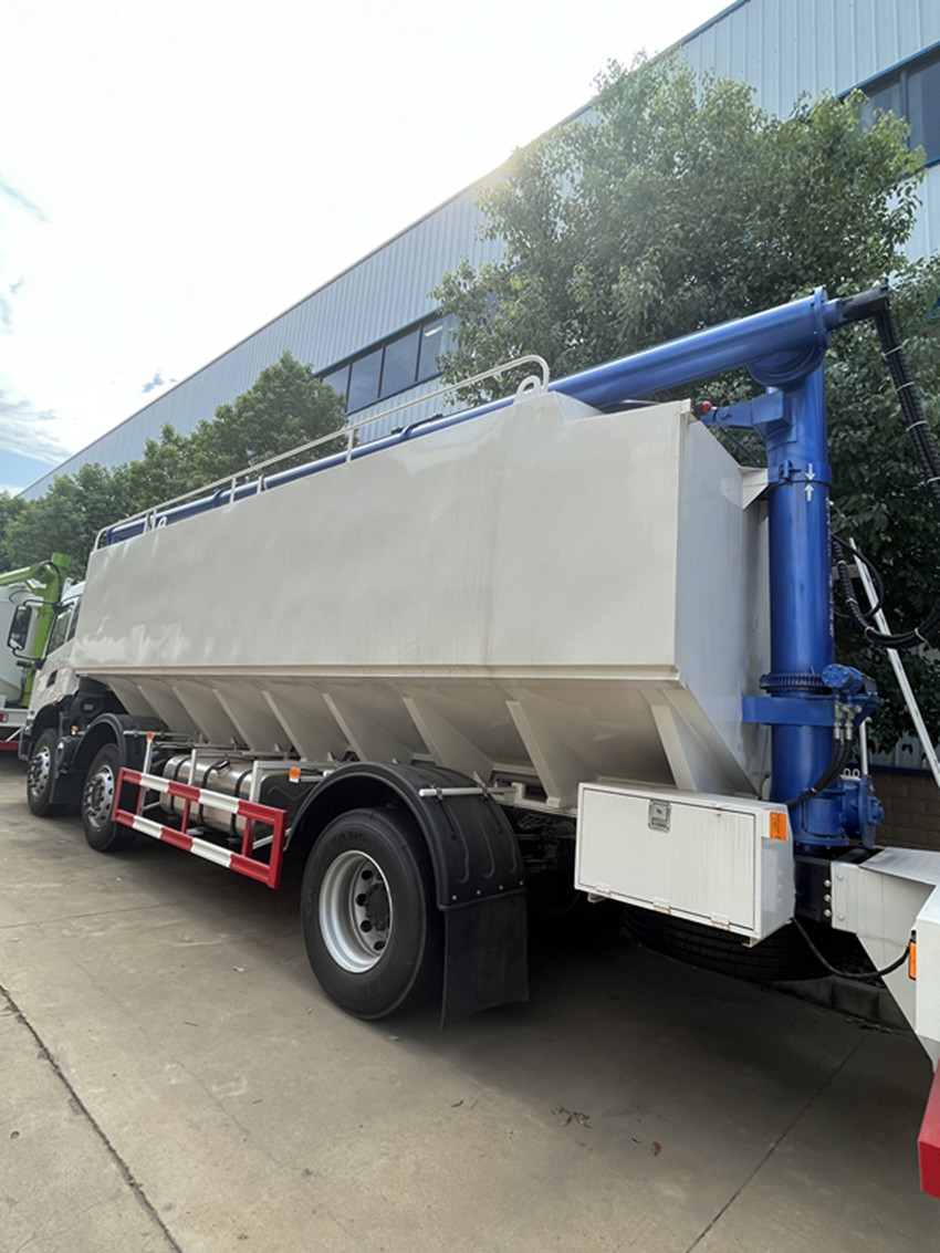 可獨立控制各分倉卸料順序和速度,整車3條蛟龍(底部水平絞龍、尾部垂直絞龍、頂部卸料絞龍),由取力器經車輛變速箱取力后,將動力傳動至高壓油泵以驅動液壓系統(tǒng)帶動各絞龍工作,或者由3個5.5kw 380v電機帶動各絞龍工作,頂部絞龍液壓控制舉升,可左右旋轉180°此車公告+環(huán)保+燃油齊全,全國上戶無憂!