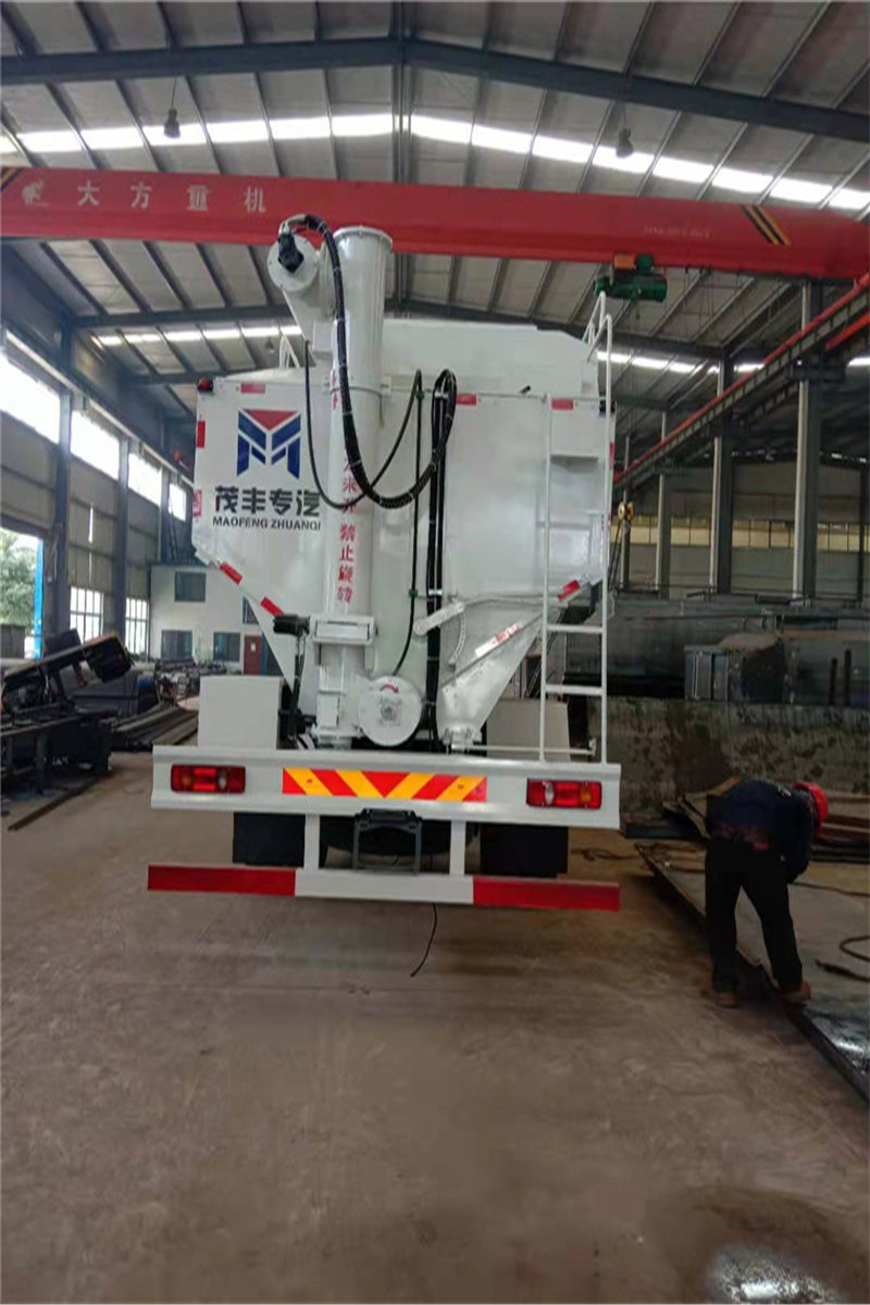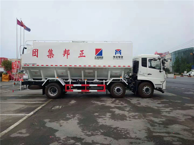 此種運輸車廣泛應(yīng)用于輸送距離遠(長距離)、卸料快、殘留量低、對物米料無污染等特點;而且,車輛不進場就可完成送料進料塔的工序,杜絕了養(yǎng)殖場車輛進場防疫問題;廣泛應(yīng)用于各類養(yǎng)殖企業(yè)、飼料加工企業(yè)。
