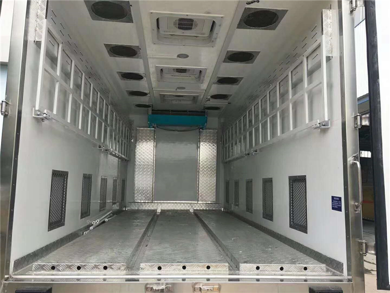 【豬苗車(chē)】上裝配置:外玻璃鋼,內(nèi)不銹鋼,兩層液壓升降層板,尾部液壓翻轉(zhuǎn)上豬平臺(tái),層板為不銹鋼骨架鋪鋁花紋板。外部電動(dòng)升降窗,排氣扇,柴油發(fā)電機(jī),暖風(fēng)加熱,喂水系統(tǒng),凈水箱、污水箱,箱內(nèi)攝像頭監(jiān)控,倒車(chē)影像,凱利制冷機(jī)組。(油暖加熱為選裝部件)整車(chē)長(zhǎng)度12000*2550*3970,箱體長(zhǎng)度9600*2340*2540(8660 裝載長(zhǎng)),發(fā)動(dòng)機(jī):康明斯機(jī)320.